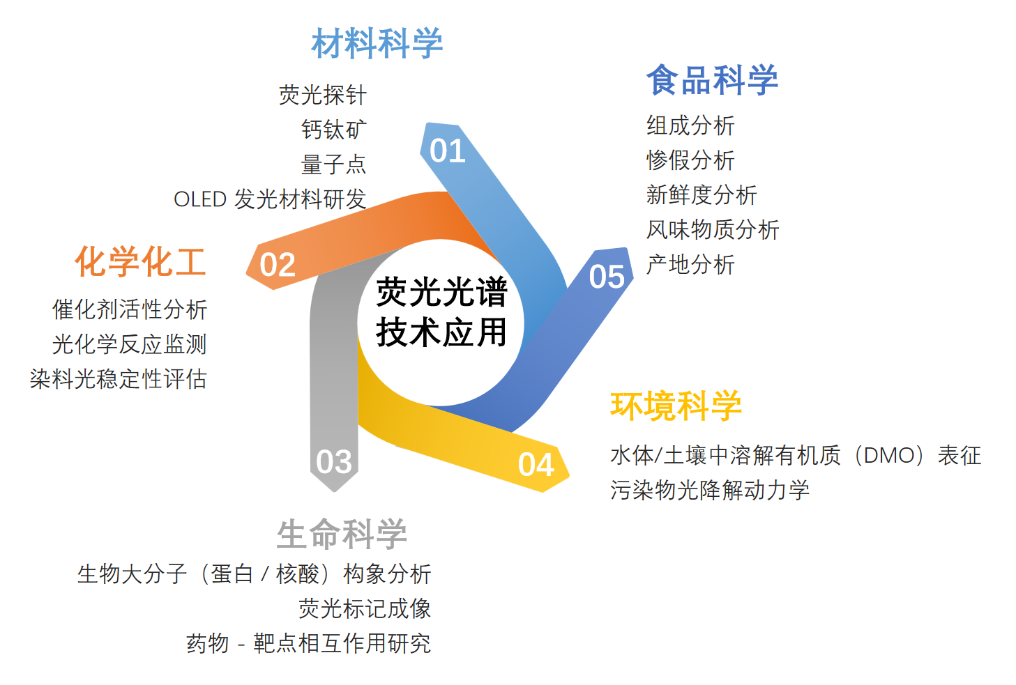 荧光光谱已应用于众多领域,特别是需要无损、显微、化学分析、成像分析的场合。无论是需要定性还是定量的数据,荧光分析都能快速、简便地提供重要信息。