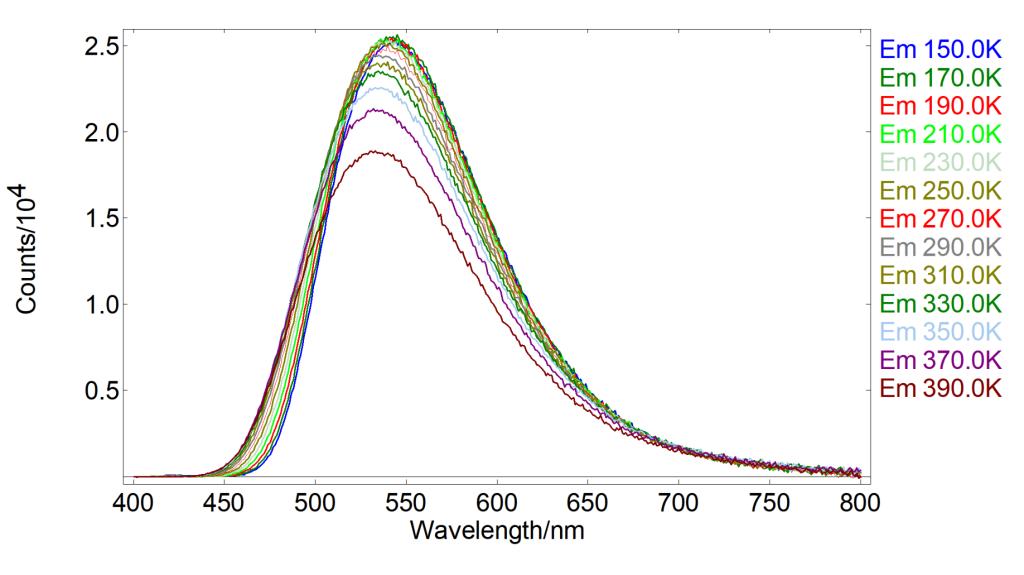 图8.荧光光谱图(蓝色)以及磷光光谱图(绿色)
