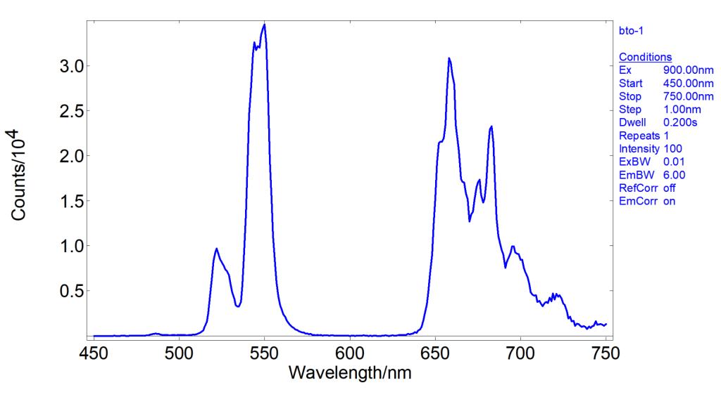 上转换荧光光谱:上转换发光(Upconversion Fluorescence)又称为反-斯托克斯发光,是指材料在长波长激发下,可持续发射波长比激发波长短的光。测试常用光源有808 nm、980 nm激光器。上转换材料主要是稀土元素掺杂的固体化合物,利用稀土元素的亚稳态特性,可以吸收多个低能量的长波辐射,从而让人肉眼不可见的近红外光转化为可见光。